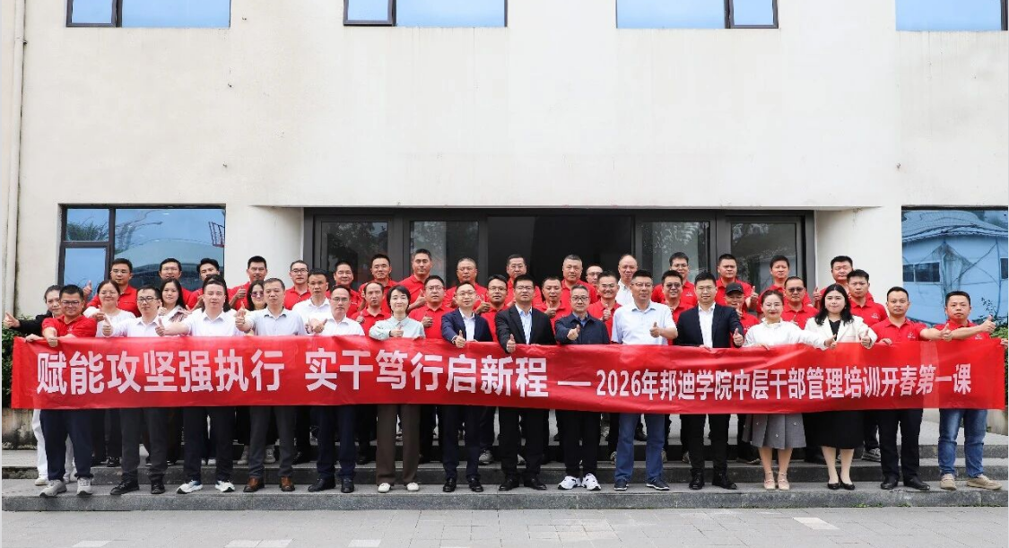 公司董事长、邦迪学院院长邢邦宝在总结讲话中指出。自邦迪学院创立以来,金院长始终作为学子智慧引路人,每年如期讲授意蕴深远的“开年第一课”。今年是十五五时期的开局之年,亦是公司迈向高质量发展纵深攻坚的关键之年。面对时代变局与产业跃迁,公司以刀刃向内的勇气推进系统性变革,主动识变、科学应变、积极求变,推进服务创新、组织创新和技术创新等管理模式,从而突破企业的发展瓶颈。立足新征程,持续对标全国头部企业发展标准与管理范式,着力锻造干部队伍的核心胜任力:战略解码能力、跨部门协同效能、复杂问题攻坚韧性及数字化转型驾驭力。在此背景下,邦迪学院与邦迪学员已迈入彼此成就、共生共融的新发展阶段。希望邦迪学员们,通过AI数字赋能,创新工作,重建执行力,重构能力优势。各级干部要躬身入局、挺膺担当,秉持终身学习理念,在实践中重塑价值坐标,于组织动态演进中,实现个体成长与组织使命的双向奔赴与同频共振。